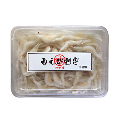 台灣的野生玉晶蝦,在海中呈現透明狀,晶瑩剔透似水晶般,與日本富山白蝦齊名,更有「海中白寶石」之稱,數量稀少且珍貴,新鮮捕撈後,立刻進行清洗、凍結,完整保留玉晶蝦的鮮度,過程中不添加化學添加物及防腐劑,含有豐富的甲殼素,酥炸後可連殼直接食用。