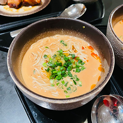 以濃縮龍蝦高湯精華,加入適量澱粉細火勾芡,化作一抹滑順濃郁的金色餡汁,淋在嚴選食材之上,鎖住鮮味、層層堆疊。一口入魂,盡是大海的奢華滋味。